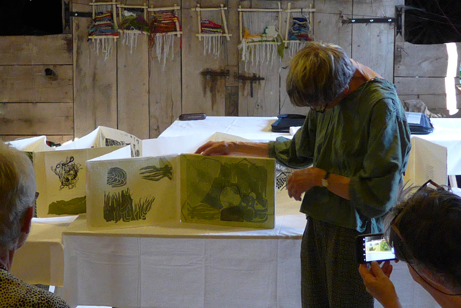 “Qu’est-ce qui se trame“ est un fil conducteur pour découvrir trois nouveaux livres de gravures et impressions, avec récits, dans la série des livr’expo. L’Oubli, Les Verdures, et Pénélope, trois histoires, reliées entre elles par le thème de la tapisserie, seront lues au cours de la présentation de chaque livre unique. Dans chaque récit de la série, trois personnages prennent successivement la parole : JE, TU et ON. JE est toujours un objet, TU et ON sont des protagonistes de l’histoire apportant leur propre version. Les images sont de MCBA, les textes de Astrid Florian, il s’agit de la même personne.